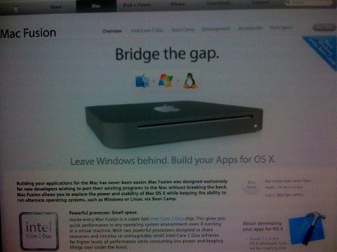 Vi riporto un’immagine che sta circolando in rete in queste ore. Secondo un rumor, infatti, Apple sta per lanciare anche Mac Fusion, una versione del Mac Mini più sottile destinata esclusivamente agli sviluppatori che potranno installare anche Windows o Linux per creare programmi per Os X.