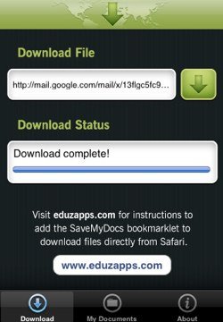 Si tratta di un’applicazione che permette di scaricare i file direttamente dal browser del dispositivo. Il funzionamento è molto semplice: mentre navigate e vi trovate di fronte uno di questi documenti, basta attivare un link tra i vostri bookmark per lanciare direttamente SaveMyDocs e attivare il download. Dopodichè entrando nel programma potrete leggerlo tutte le volte che vorrete.
