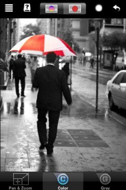 Se volete creare foto con questa tecnica direttamente dall’iPhone allora usate ColorSplash. Si tratta di un programma che prepara l’immagine per la desaturazione parziale. Con un polpastrello potrete decidere quale zona trasformare in colore, avendo a disposizione una spatolina grigia per perfezionare i contorni dell’elemento.