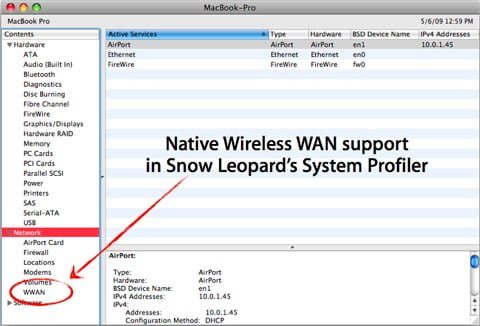 I prossimi portatili di Apple? Potrebbero avere il supporto alle reti 3G. Lo rivelano gli sviluppatori che stanno lavorando all’ultima versione beta di Snow Leopard, il prossimo sistema operativo della Mela. All’interno di System Profiler, infatti, è apparsa una nuova voce nella categoria Network: WWAN, cioè Wireless WAN.