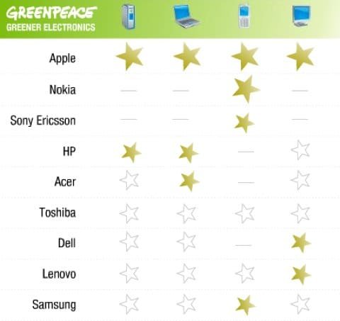 La classifica è stata realizzata individuando l’uso di materiali pericolosi nella realizzazione dei prodotti e, dopo aver eliminato PVC e altre sostanze, i computer della Mela risultano essere i più ecologici.