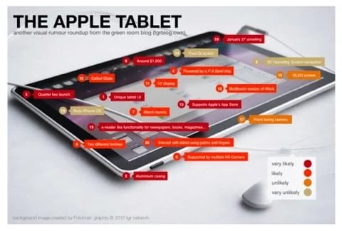 Mentre si attende l’ufficializzazione della data del 27 gennaio, giorno in cui dovrebbe essere lanciato il famoso tablet di Apple, arrivano altre indiscrezioni che potremmo ritenere importanti o meno. Eccole: