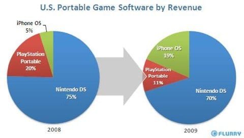 Sony battuta per la seconda volta. Dopo aver perso il predominio del mercato musicale del Walkman, ora la società giapponese è stata superata nella vendita di giochi per la sua consolle portatile, la PSP. Secondo la società di analisi Flurry, infatti, i giochi per App Store hanno superato il fatturato di quelli di Sony.