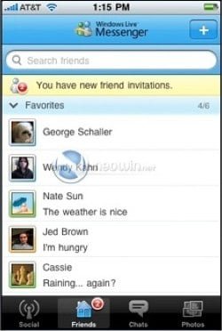 Tutti i ragazzini alzassero le mani. Il Windows Live Messenger sta per arrivare nell’iPhone nella sua versione ufficiale. Al momento sono stati diffusi alcuni screenshot in cui si mostrano gli elenchi dei contatti, la sezione foto da condividere, la classica chat e una sezione per la parte social della piattaforma.