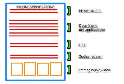 Come saprete lo spazio di questo blog non è infinito ogni giorno. Per non riempire troppo la pagina, potrei ospitarne al massimo due. Molti sviluppatori, però, sono bravi nello sviluppare ma poco bravi nel presentare le loro applicazioni. A volte mi arrivano email praticamente vuote e altre ricchissime di informazioni, anche troppo.