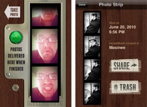 Si tratta di un’applicazione che sfrutta la fotocamera frontale del nuovo iPhone per scattare 4 scatti consecutivamente e applicare effetti alle foto. Il risultato è condivisibile su Facebook o via email. IncrediBooth pesa 5,2 MB e si acquista per 0,79 € nell’App Store.