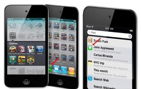 Così ecco apparire l’icona del telefono, elemento disponibile solo nell’iPhone. In Spotlight, inoltre, appaiono riferimento ai messaggi nei risultati di ricerca. Cosa impossibile considerando che con l’iPod Touch non è possibile mandare e ricevere messaggi. Molti di questi errori sono ancora on line. Se curiosate nel sito di Apple li vedrete ancora lì.