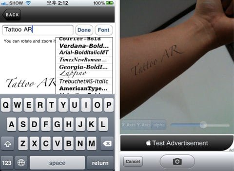 Grazie alla fotocamera del telefono, infatti, si può sfruttare la realtà aumentata per vedere la parte del corpo con il tatuaggio. E’ possibile usare il tatoo di un testo oppure di un’immagine caricandola dal rullino. TattooAR pesa 2,3 MB e si scarica gratis dall’App Store.
