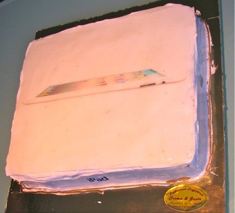 I veri mac user si riconoscono dalla torta. Il nostro lettore Fischer il primo maggio ha compiuto gli anni e anche quest’anno sua moglie gli ha fatto un bel regalo: una torta a forma di scatola dell’iPad 2.