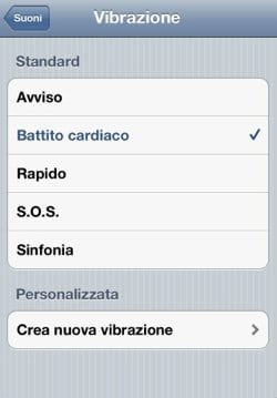 In questa sezione potrete leggere: Avviso, Battito cardiaco, Rapido, S.O.S e Sinfonia. Se non vi piacciono potrete creare una nuova vibrazione scandendo il ritmo in un’apposita area e salvando.