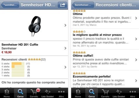 L’applicazione permette di cercare in numerose categorie, leggere le recensioni e utilizzare tutte le funzioni presenti anche nella versione web, come Amazon Prime e l’acquisto veloce 1-click. Amazon Mobile pesa 4,4 MB e si scarica gratis dall’App Store.
