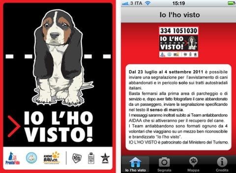L’app Io l’ho visto permette di segnalare il cane abbandonato dal 23 luglio al 4 settembre. Basta fotografare il povero animale e inviare la segnalazione, con indicazioni stradali, dove lo si è visto. Un team di volontari verrà a controllare per recuperarlo e affidarlo ad un canile.