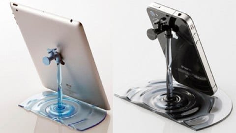 Dalla forma di rubinetto da cui sgorga acqua blu o nera, è formato da plastica con un’angolazione tale da sostenere l’iPhone o l’iPad. Lo vende Elecom in Giappone.