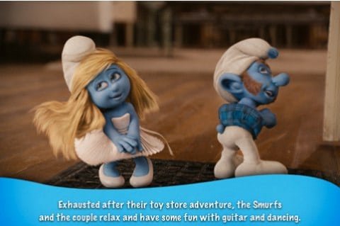 L’applicazione è la storia ufficiale del film, con tanto di suoni e voci dei personaggi, con tavole interattive per scoprire tutto sui piccoli personaggi blu. La storia è scritta in inglese, quindi necessità di un adulto per la traduzione.