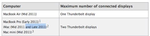 Arriveranno dei nuovi iMac entro la fine dell’anno? La risposta è affermativa se prendiamo in considerazione una prova messa a disposizione direttamente da Apple. Nella documentazione collegata ai Cinema Display con porta Thunderbolt, infatti, Apple dichiara espressamente la loro compatibilità con gli iMac di metà 2011 e fine 2011.
