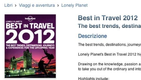 Per il quarto giorno di regali Apple ha scelto un omaggio al quanto bizzarro per l’Italia: una guida in inglese. La società, infatti, ha reso disponibile per le prossime 24 ore la guida Best in Travel 2012 di Lonely Planet.