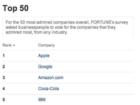 Lo hanno stabiliti gli esperti della rivista Fortune nella classifica annuale. Nelle prime 50, infatti, Apple ricopre la prima posizione seguita da Google e Amazon.