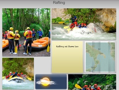 In più la società permette di aggiungere dei widget, come note, previsioni meteo, mappe, testo, calendario, pagine web e così via, in modo da permettere di creare una sorta di mini diario fatto di immagini e testo da condividere con chi si vuole. Dopo aver creato la pagina, infatti, la si può mandare ad iTunes, trasformare in presentazione per iPad oppure salvare il tutto in iCloud.