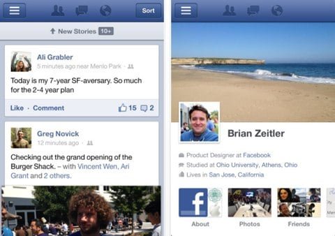Dopo mesi di immobilismo, in cui milioni di dollari sono stati spesi per fare altro, Facebook si è occupata del 40% del suo traffico, vale a dire quello generato dai dispositivi mobili, aggiornato la sua applicazione per iPhone e iPad alla versione 5.0. La novità di rilievo è la velocità: abbandonato il supporto all’HTML5 incastonato nell’app, vale a dire mescolando versione web e applicazione nativa, la società ha finalmente riscritto l’app in Objective-5.