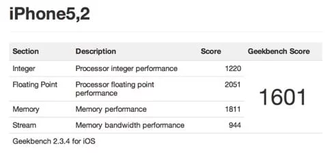 Negli archivi di Geekbench, noto software per effettuare i test di velocità dell’hardware dei dispositivi, è stato trovato il registro di un test effettuato con un iPhone 5. Probabilmente un dipendente di Apple o un giornalista che ha ricevuto il nuovo telefono per scriverne una recensione lo ha usato per dei test.