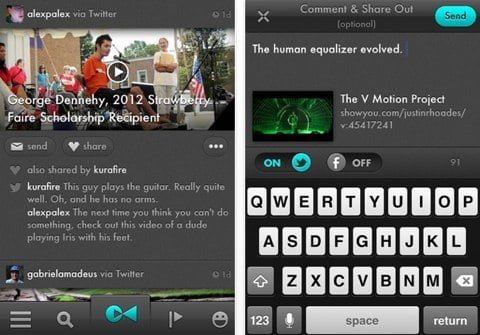 Una volta aggiunte le credenziali di Twitter o Facebook sarà creato l’elenco di video preferiti o caricati dai propri contatti per poter, successivamente, inserire commenti, condividerli o semplicemente inserirli in una lista di preferiti. In questo modo non sarà necessario andare a scovarli manualmente e, nello stesso tempo, si avrà una sorta di rete televisiva personale creata dai propri amici.