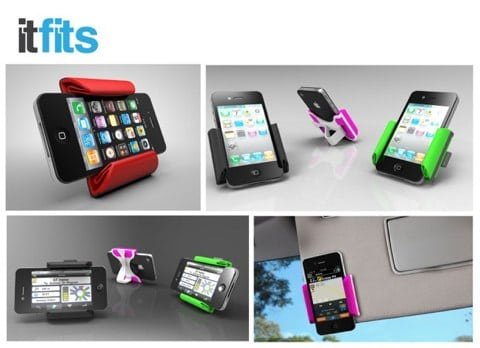 L’accessorio usa delle alette elastiche per poter adattarsi a qualsiasi dimensione e spessore del telefono. ItFits ha anche una graffetta sul retro in modo da poterlo agganciare a varie superfici, come per esempio il para sole dell’auto.