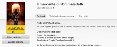 Continua la promozione “12 giorni di regali” di iTunes. Per il 4° giorno Apple ha preparato un regalo che ci offrirà qualche ora di lettura a tutti. Il regalo, infatti, è l’ebook “Il Mercante dei libri maledetti” scritto da Marcello Simoni.