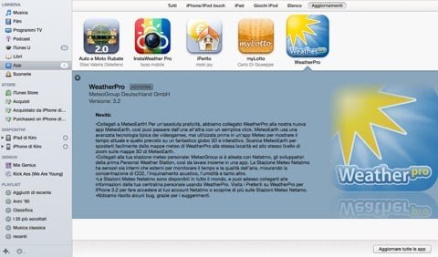 Se si preme su ciascuna icona da aggiornare si avrà l’elenco di novità apportate all’interno delle nuove versioni. Così facendo si potrà premere sul pulsante aggiorna per aggiornare la singola applicazione, oppure premere il pulsante posto in basso a destra che permette di aggiornarle tutte insieme contemporaneamente.