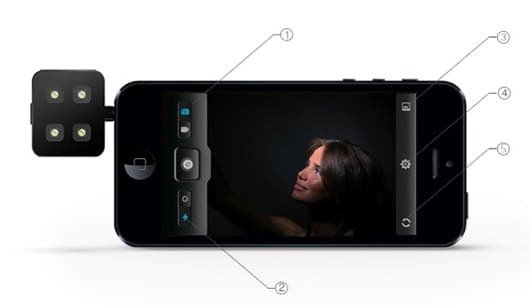 Questo dispositivo possiede 4 LED da una temperatura di 5600k. La batteria interna da 200 mAh evita di prendere energia da quella dell’iPhone e permette 1000 scatti o 40 minuti di utilizzo se la si usa durante le riprese video. Grazie ad un’applicazione gratuita, inoltre, si potrà regolare la quantità di luce emessa. Un cavo USB permette di utilizzarlo anche con il computer, per illuminare il proprio volto durante le video chat.