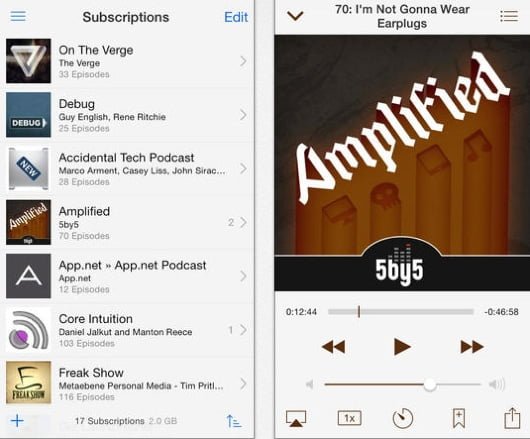 Intanto esistono delle applicazioni alternative che integrano una serie di funzioni interessanti. Tra queste la capostipite è sicuramente Instacast. Quest’app ha una grafica curata, minimale e fluida per cercare le iscrizioni nell’elenco di podcast nell’iTunes Store e permette di scaricare le nuove puntate automaticamente. Basta lasciare l’app in background.