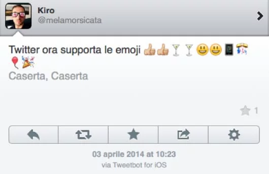 Ora, a distanza di molti anni, Twitter abilita queste faccine nei suoi tweet. Questo significa che se le utilizzate da qualsiasi applicazione, i tweet le riporteranno indipendentemente dal sistema operativo che andrà a visualizzarle.