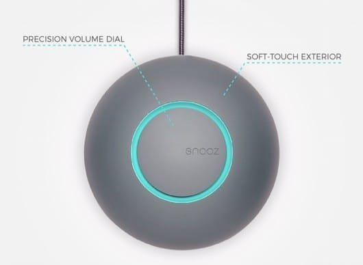 Lo Snooz, invece, fa una cosa diversa: crea un suono reale. Nel suo design a saponetta è nascosta una piccola ventola. Quando si attiva, mediante il pulsante centrale, la ventola parte e riproduce un suono bianco. Sul corpo dell’accessorio c’è una sezione girevole per aumentare o ridurre la potenza della ventola e aumentare e ridurre il suono.