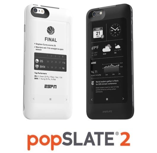 La prima versione del PopSlate risale al 2012, quando una società aveva avuto l’idea di realizzare una custodia per iPhone, con il retro munito di schermo e-ink. Così alcune operazioni possono essere effettuate con uno schermo che consuma meno, consentendo di risparmiare energia.