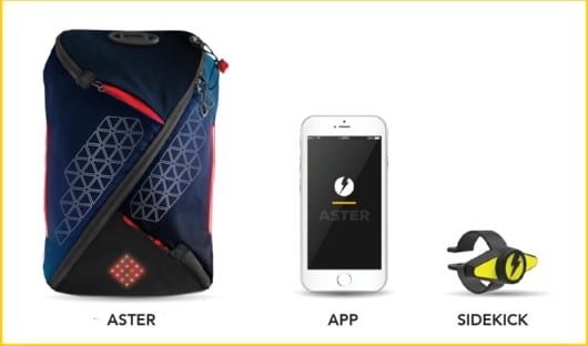 Uno dei fattori principale degli incidenti con l’implicazione dei ciclisti è la scarsa visibilità degli stessi sulle strade e le manovre poco chiare. A tal proposito lo zaino Aster tenta di dare una mano. Sulla sua superficie ci sono 16 LED per aumentare la luminosità del ciclista, inoltre tramite dei comandi sul manubrio è possibile indicare le classiche frecce di girata.