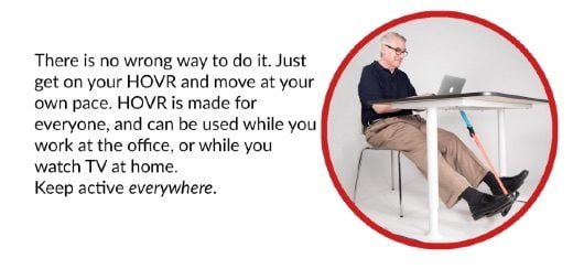 Una volta posizionata si possono appoggiare i piedi su un poggiapiedi sospeso e muoverli mentre si lavora. Secondo gli studi della Mayo Clinic e dell’Università dell’Illinois, con questo sistema si consumano il 17% di calorie in più rispetto al metodo classico di avere i piedi fermi.