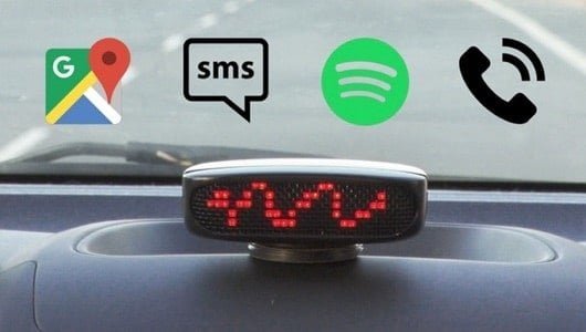 Dashbot è un piccolo schermo LED da posizionare sul cruscotto. I LED sono grossolani e mostrano solo dei simboli. A suo vantaggio ha un sistema di gestione dei microfoni che elimina i rumori di fondo dell’auto, come quelli del motore, delle ruote e del vento. In questo modo basta attivare i comandi vocali pronunciando “Dashbot…” per inviare un messaggio, far partire la musica o chiedere informazioni stradali.