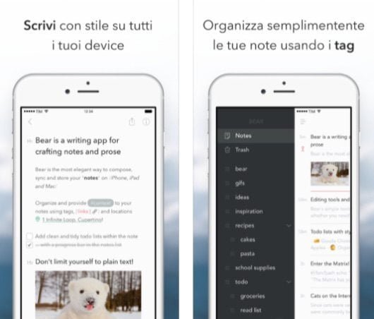 Quest’app fa sua un’interfaccia minimale, personalizzabile con vari temi, che permette di scrivere in Markdown, creare elenchi ToDo ed esportare il tutto in vari formati. Tra le varie caratteristiche di Bear figurano: