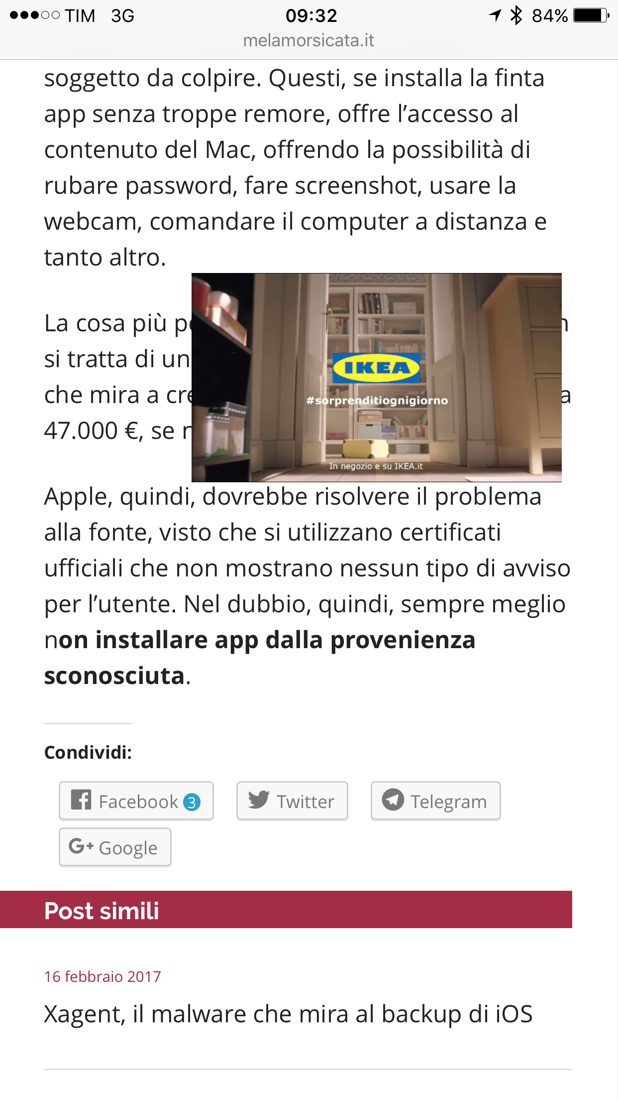 Purtroppo sul mio iphone, la pubblicità presente impedisce la completa lettura dell’articolo