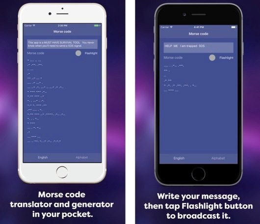 Quest’app permette di convertire automaticamente il testo in linguaggio morse. Inoltre, grazie all’uso del flash dell’iPhone o dell’iPad, è possibile trasmettere automaticamente il messaggio sotto forma di impulsi luminosi, tra impulsi lunghi e quelli corti.