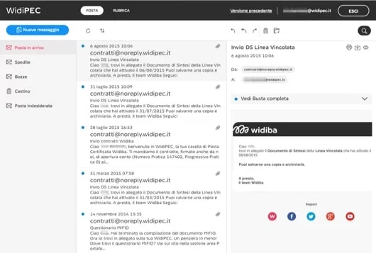Trovate vari servizi di PEC in rete, tutti a pagamento. I Widiber, vale a dire i clienti della Banca Online, ne hanno una gratis all’apertura del conto. L’azienda ha avuto una bella idea per collegare l’apertura del conto alla digitalizzazione dei documenti: visto che bisogna certificare l’autenticazione online per aprire un conto, si può approfittare di questo processo per attivare anche una PEC.