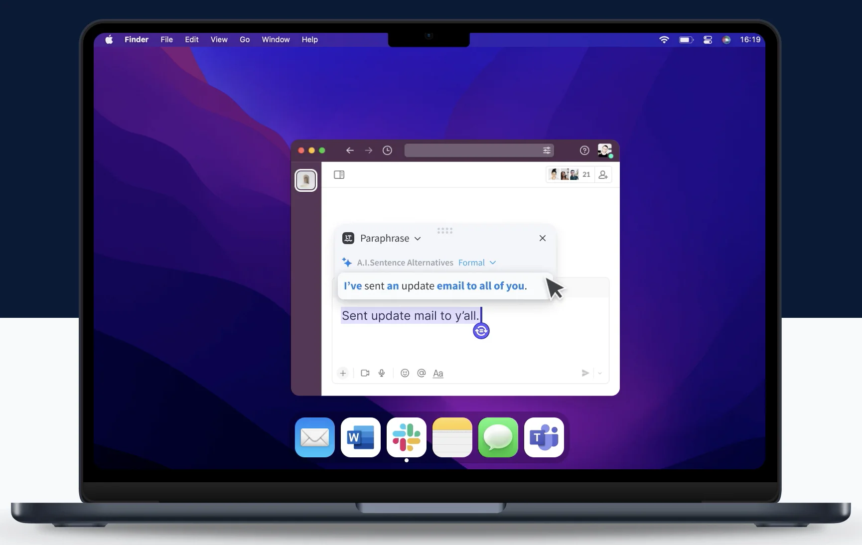 Per esempio troviamo Safari con l’estensione, ma anche Mail, Note, Messaggi, Slack, Word e Teams di Microsoft. Non altro. Quindi se vi serve in altre app potete al massimo copiare il testo, tornare in LanguageTool e incollarlo lì per il controllo.